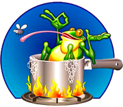 No lo he hecho nunca. Pero según parece, si se mete una rana viva en una cacerola llena de agua hirviendo, la raná saltará afuera inmediatamente–apenas toque el agua caliente. Sin embargo, si ponemos la rana en una cacerola con agua templada y vamos calentando suavemente, la cosa se pone interesante. En este caso, resulta que la rana se queda quieta y tranquila en la cacerola. Hasta que finalmente muere hervida.